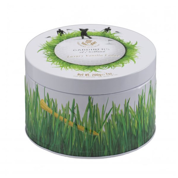 For some, golf is an obsession.  And what better gift to give a golf fanatic than a decorative tin complete with golf themed imagery and illustrations and filled with our meltingly delicious vanilla fudge.